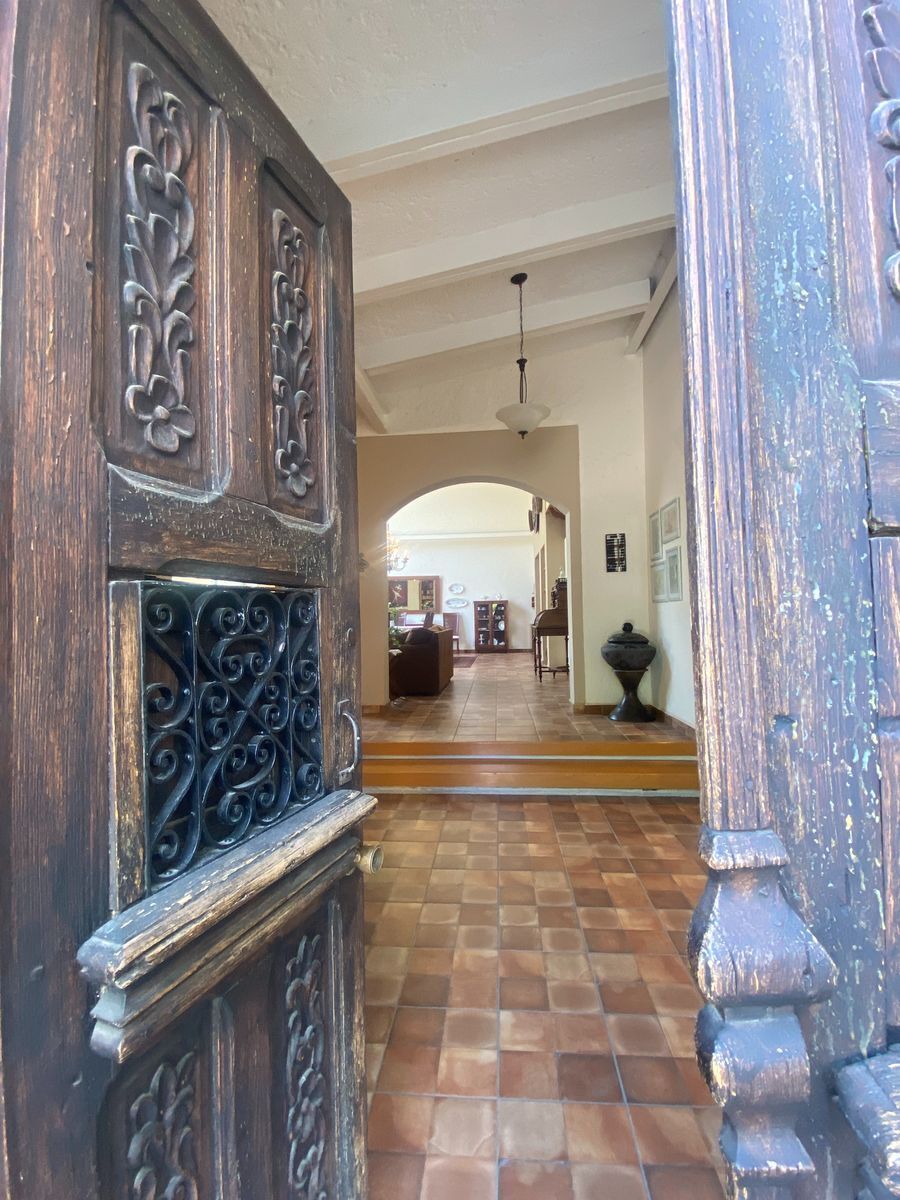 Casa ubicada en el Pueblito, ex estudio del artista queretano Santiago Carbonel. Terreno de 3100 m2, amplios jardines, 950 m2 de construcción que se dividen entre la casa principal que cuenta con 4 recamaras, cocina, comedor, sala, estudio, cuatro de servicio, bodegas, un departamento independiente de 2 recámaras con sala y comedor, un área que se adaptó para oficinas pero que pueden ser más cuartos en su momento. (Excelente para negocio geriátrico)